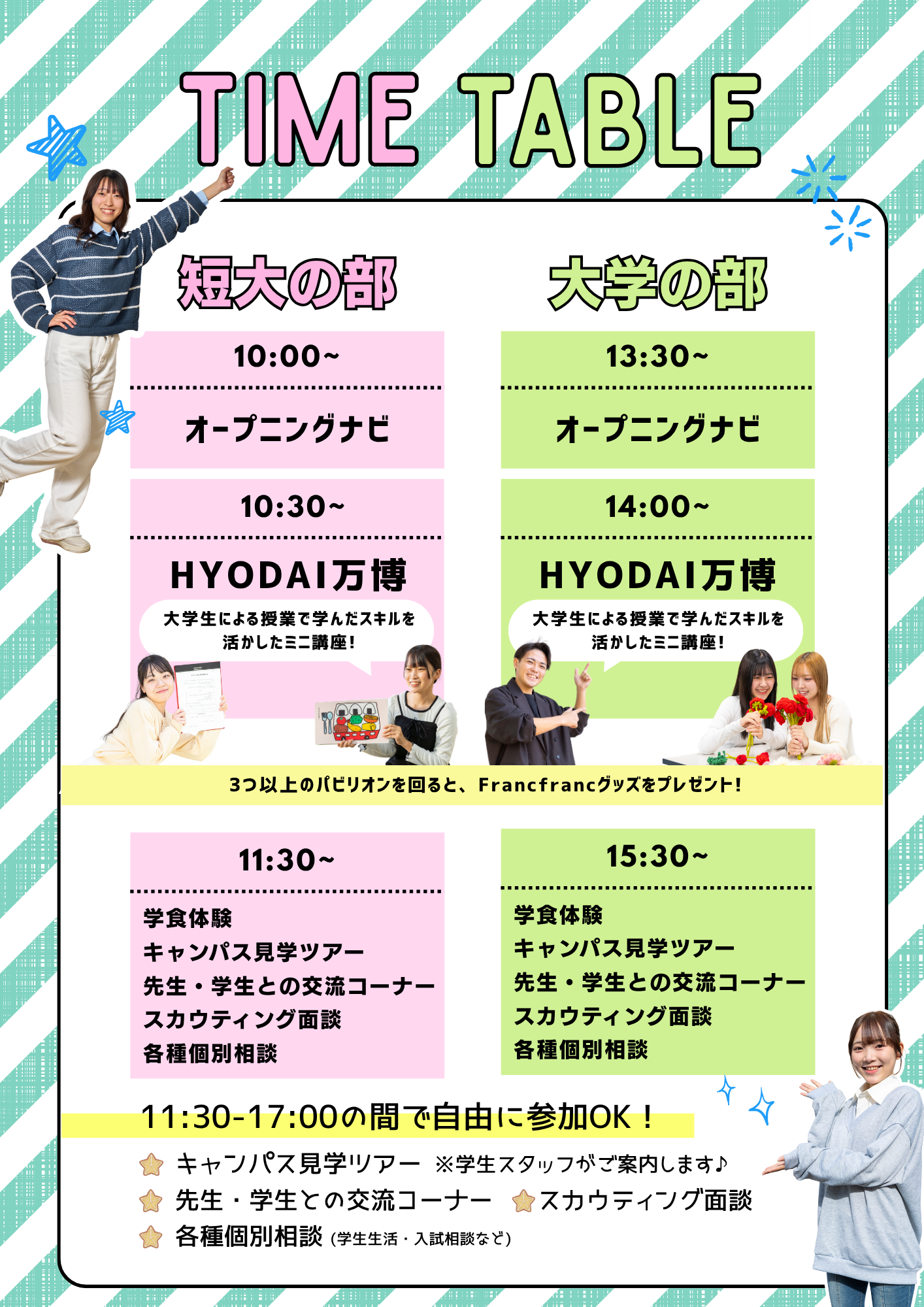 【短大の部】 10:00~13:00(9:30受付開始)