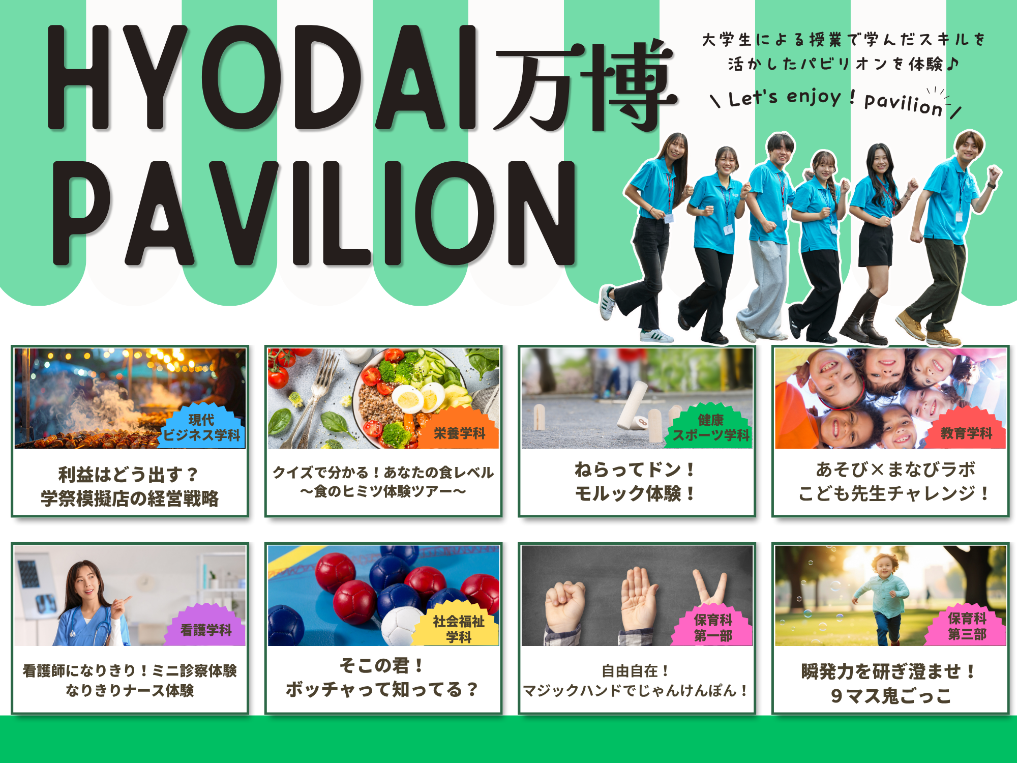 大学生が授業で身につけたスキルを活かして、いろんなパビリオンを用意しています!