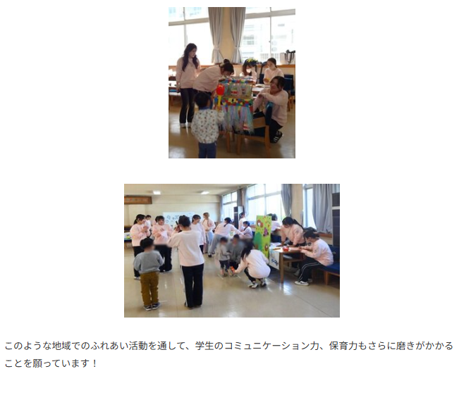 【短期大学部保育科】 保育科第三部2年生が地域のお子さんと楽しいふれあいを行いました。 10月26日(日)園遊会、11月 8日(日)大学祭