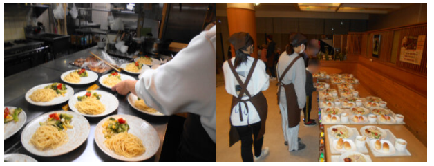 当日は、学生ボランティアが調理補助や盛り付け、配膳などを担当し、テキパキと役割分担をしながらスムーズに進行していました。